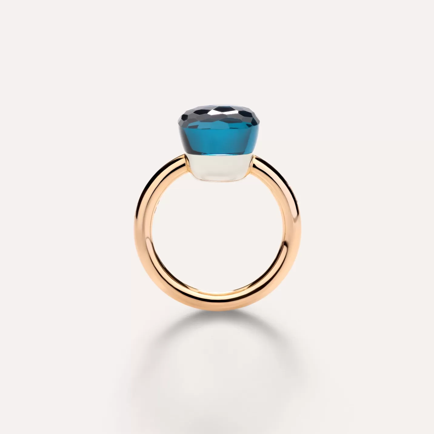 Anello in oro rosa e bianco 18K con 1 topazio blu London (≈9 ct).
