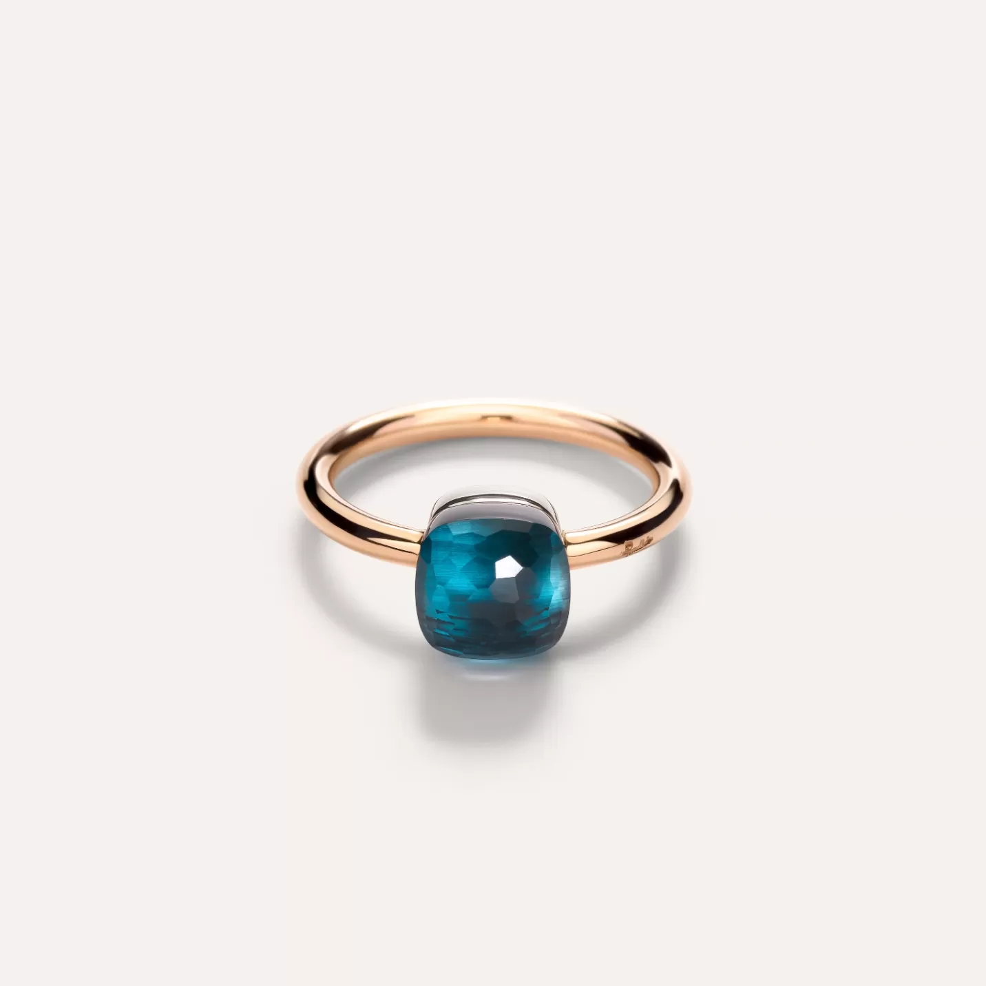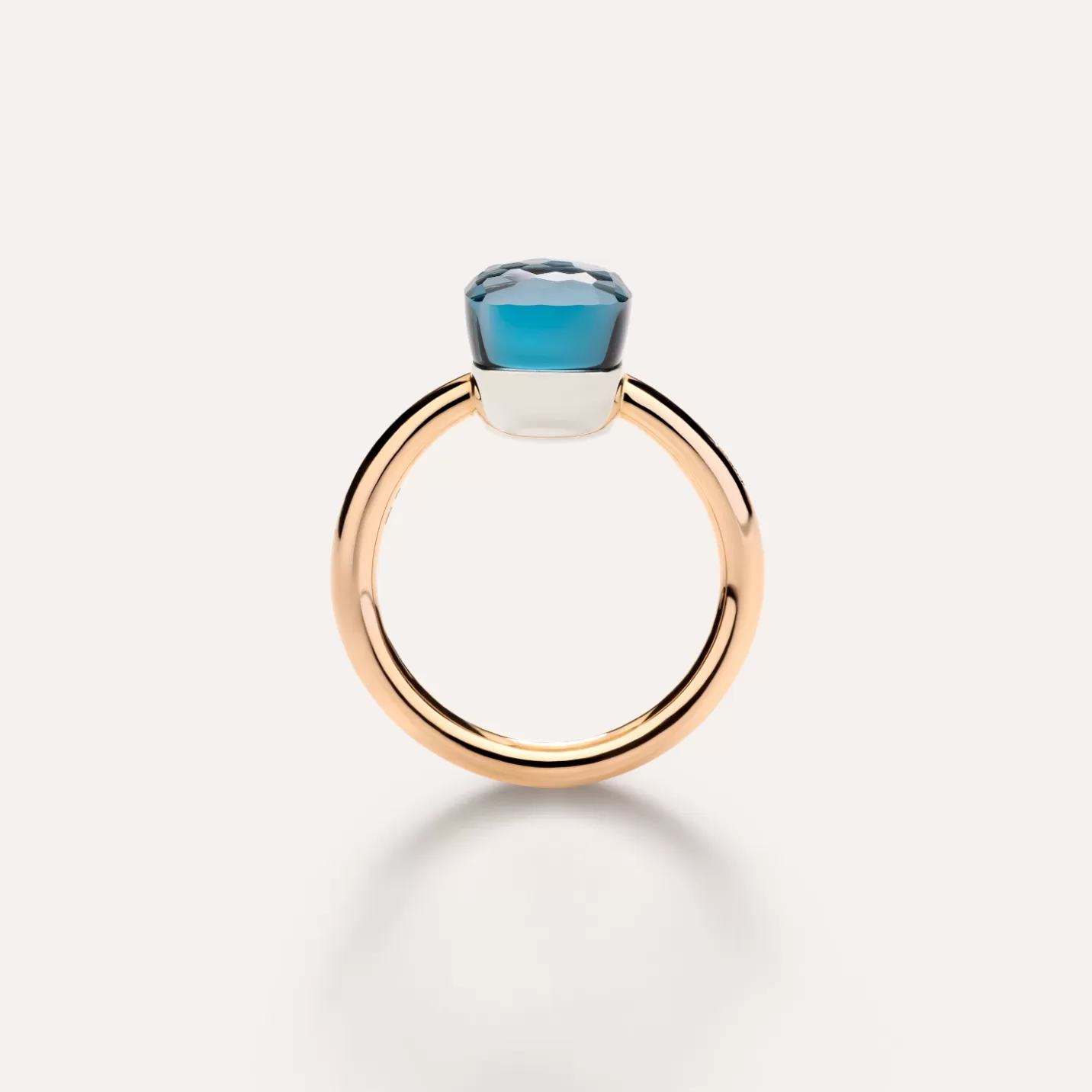 Anello in oro rosa e bianco 18K con 1 topazio blu London (≈6.5 ct).