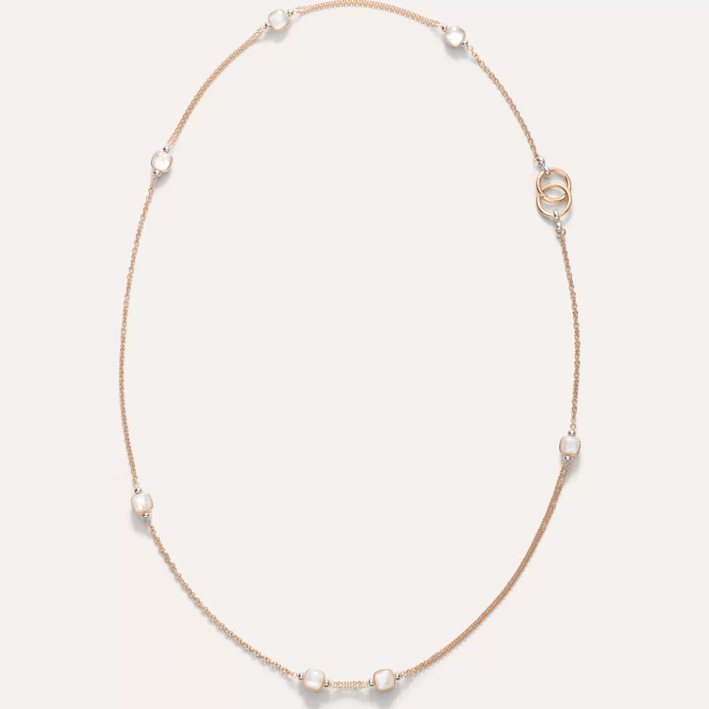 Collana in oro rosa e bianco 18K con 7 madreperle bianche e 7 topazi bianchi (≈50.4 ct).