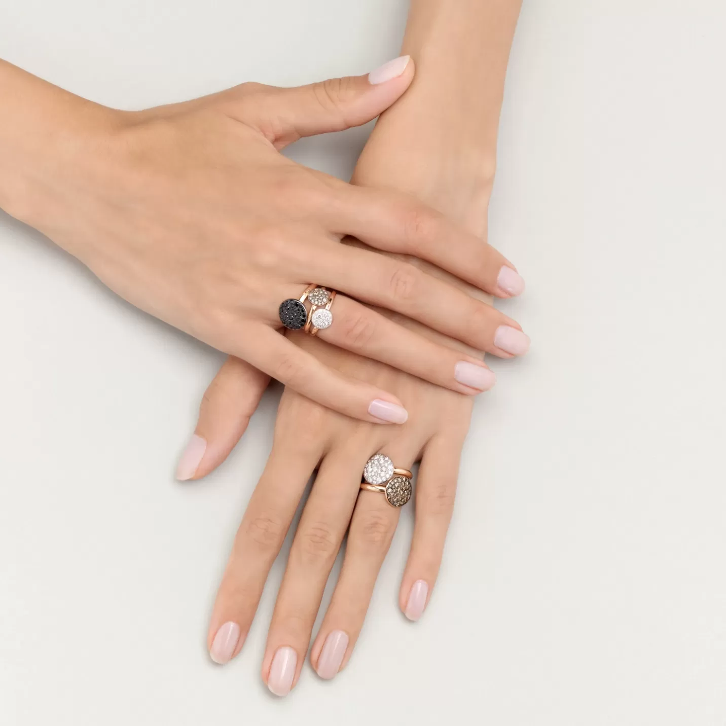 Anello in oro rosa 18K con 37 diamanti bianchi (≈0.7 ct) su oro rosa 18K rodiato bianco.